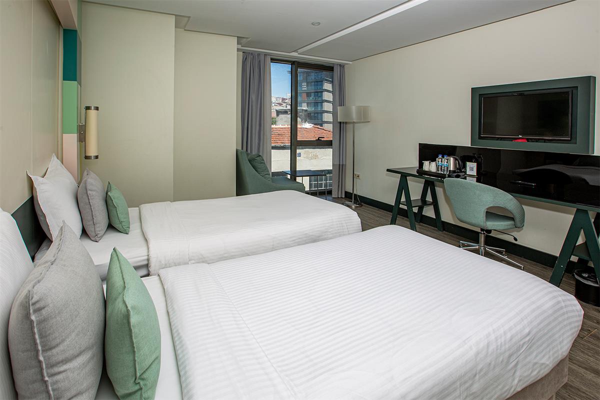 Standard Oda: Şehir manzaralı odaların büyüklükleri 25 m²'dir. Max. 3 kişiye kadar konaklayabilir.
